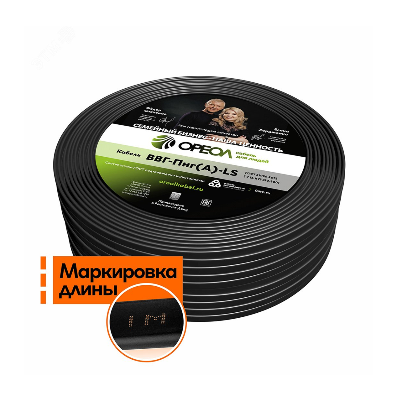 ВВГнг-LS 2х2 — силовой кабель с двумя токопроводящими медными жилами сечением 2,5 мм² в ПВХ-изоляции и оболочке
