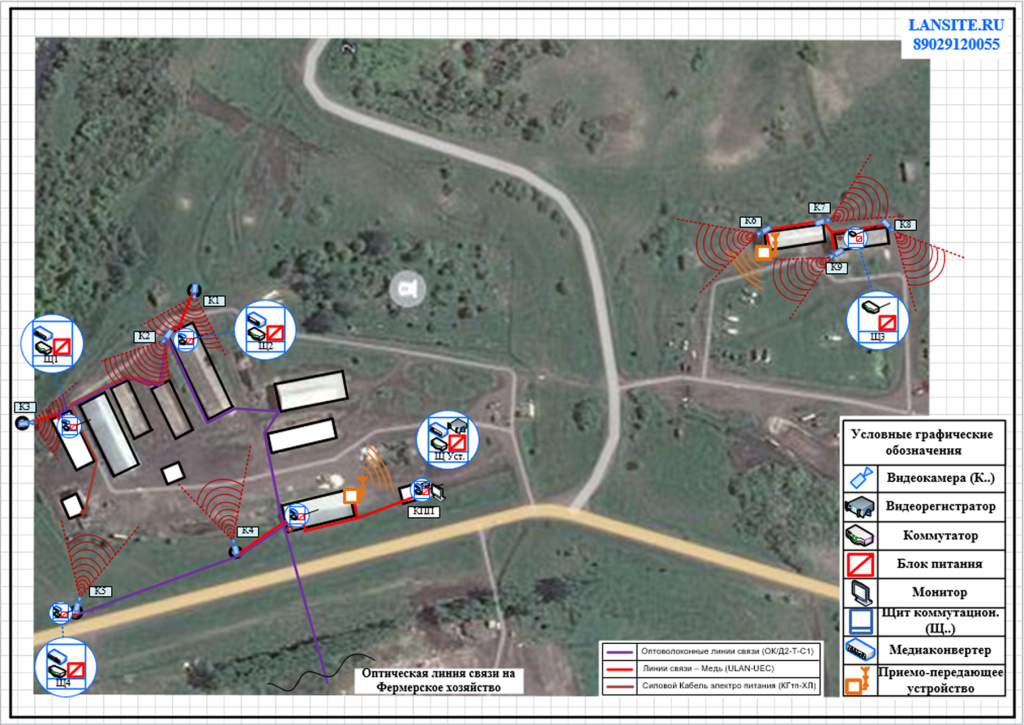 Прилагаем вариант установки системы видеонаблюдения на большой группе предприятий агрохолдинга: