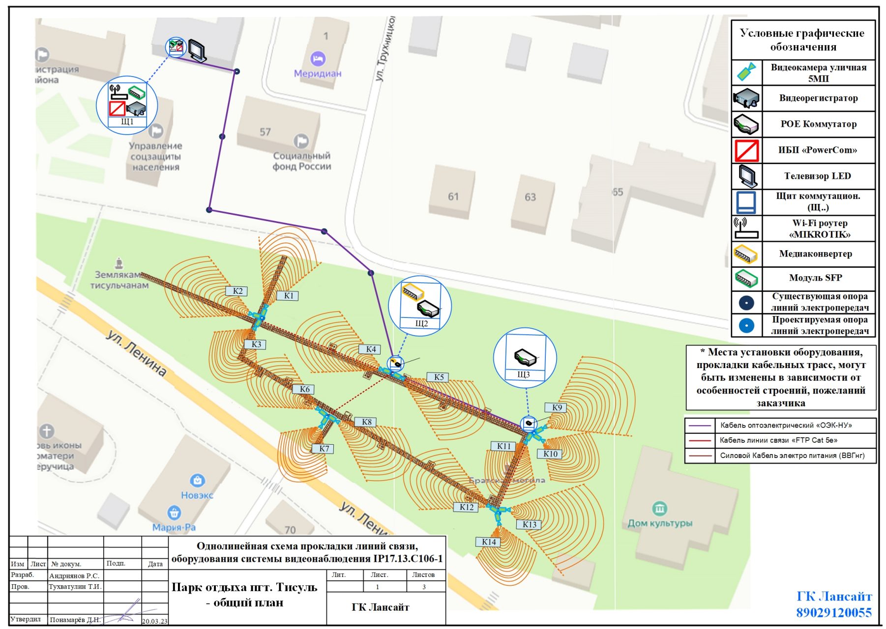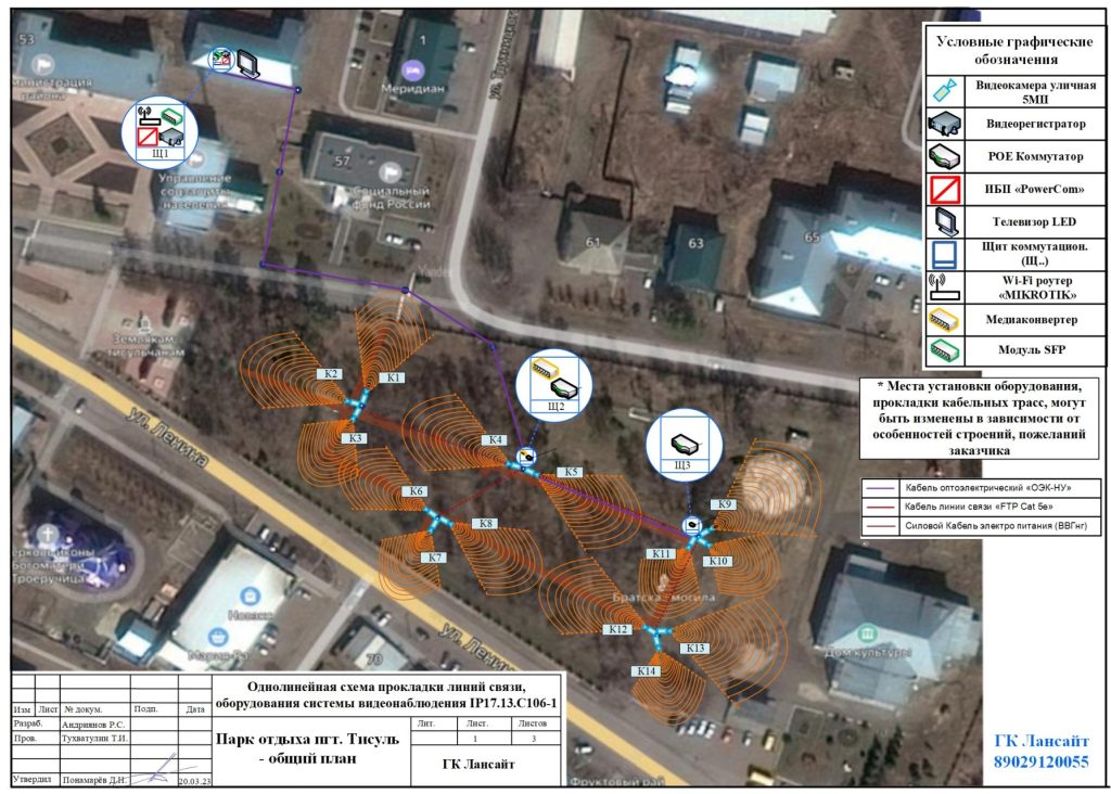 Прилагаем вариант установки системы видеонаблюдения в парке: